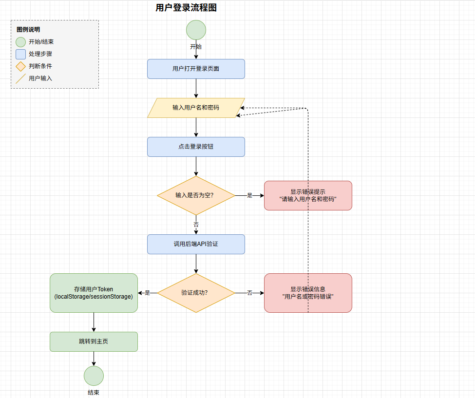 绘制一个用户登录逻辑流程图,使用draw.io格式