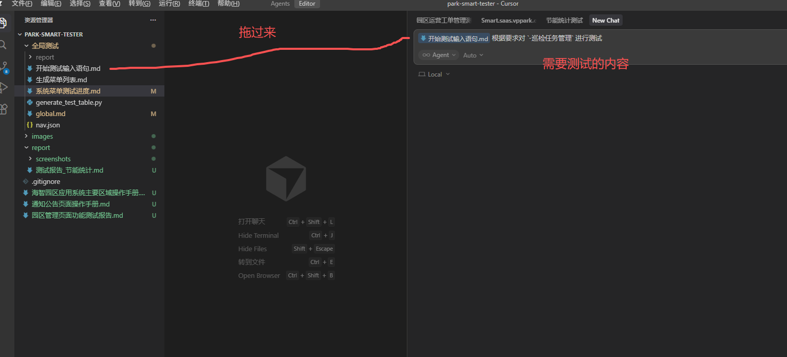 - 每次开始新条目测试前(包括多轮测试场景),必须重新核对`global.md`中的测试规范、操作流程及报告模板要求