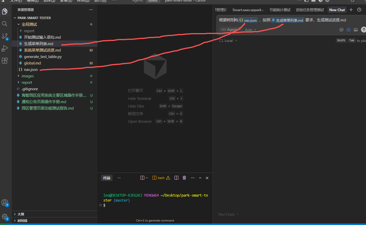 根据树形结构@全局测试/nav.json ,按照@全局测试/生成菜单列表.md 要求,生成测试进度.md
