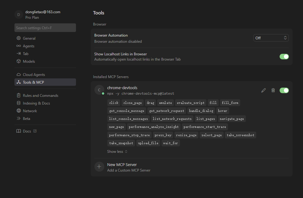 - 设置chrome devtools mcp