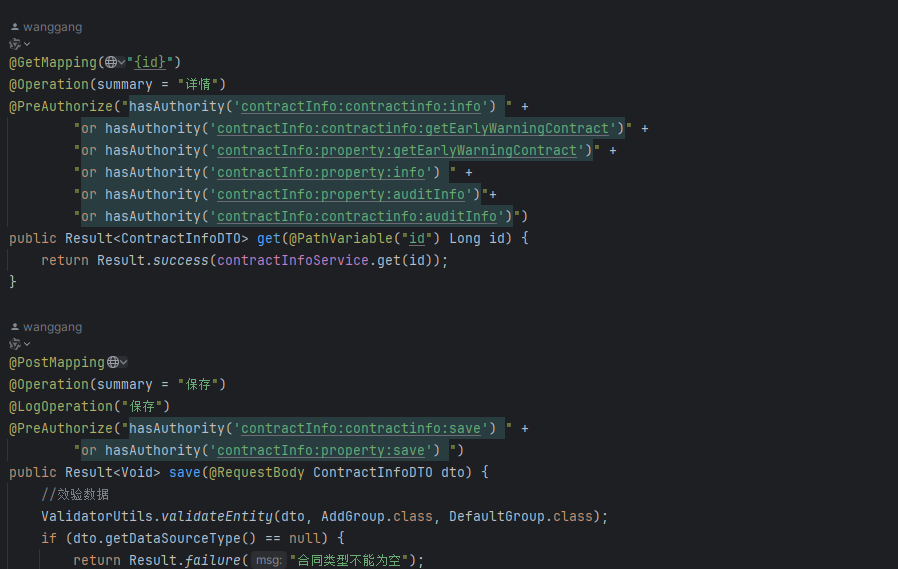 一、循环引用问题 项目中不能出现循环引用,如果确实需要相互引用,必须抽取公共方法 二、授权标识问题 授权标识必须一个按钮,一个授权标识,一个接口被多个按钮使用,授权标识必须分开,当页的列表查询放到当前页面上,如图:
